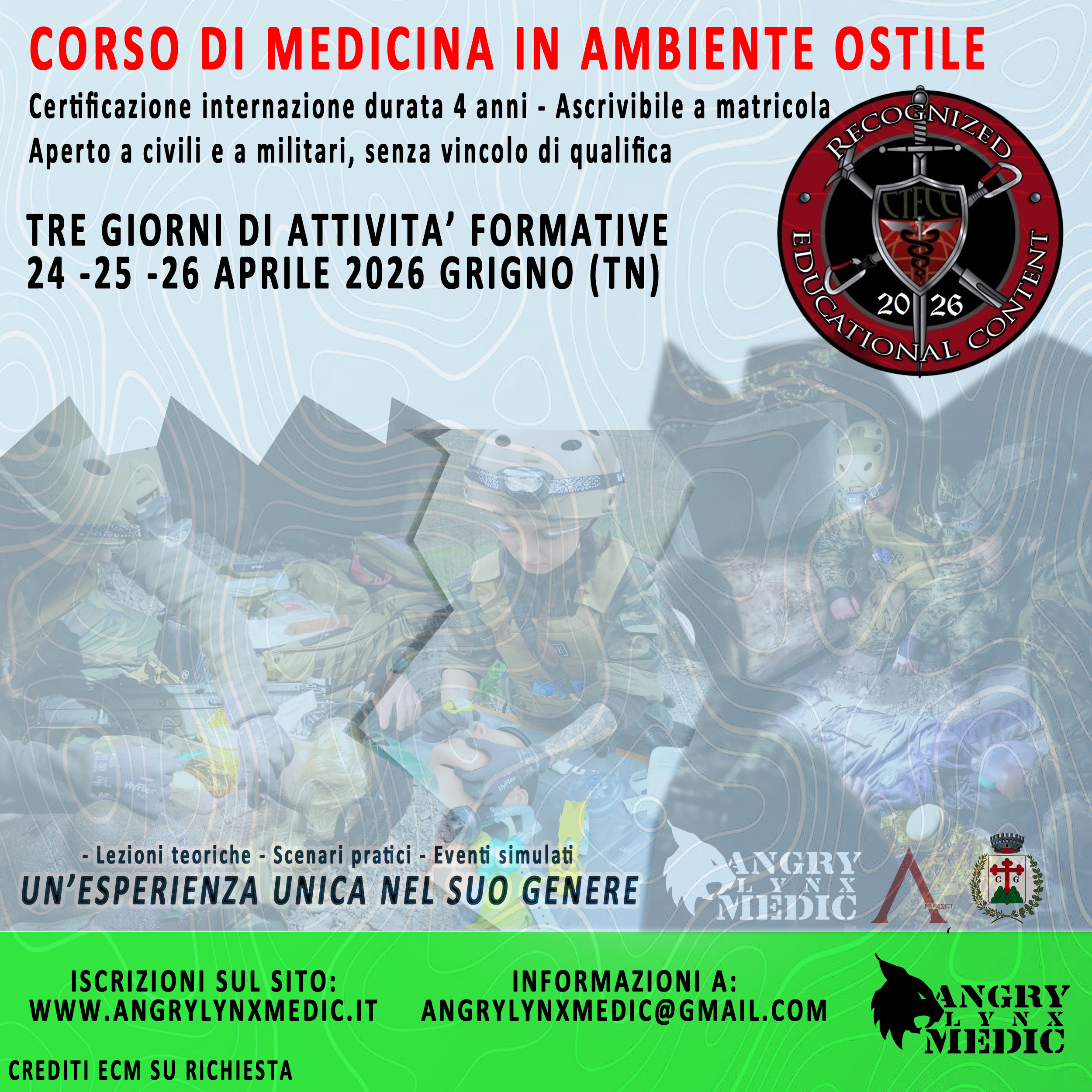 L’iscrizione è aperta  a tutti, sia al personale civile che militare. Aperto a laici o a studenti delle professioni sanitarie, ai soccorritori  e a tutti coloro che vogliono mettersi in gioco.